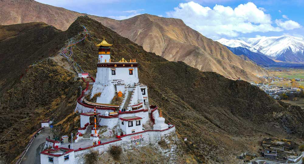 Towering at the top of Mt. Tashi Tsering, east bank of the Yarlung River – Yumbu Lakang is the first palace and one of the earliest constructions in Tibet. The castle was built in 127 BC by the first king of Tibet, Nyatri Tsenpo.