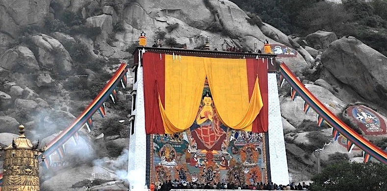 As the prologue of the festival, the most impressive ceremony is the display ofthe  Buddha Thangka at the Drepung Monastery.